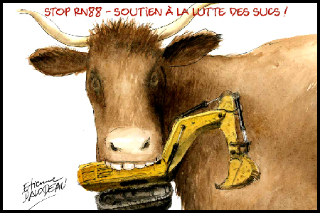année de lutte Cliquez pour retrouver L'historique de la lutte contre le projet Eté, automne,Hiver 2020, 2021, 23, 24, 25 et certainement davantage OUI à un contournement "léger" NON au projet pharaonique de déviation de la RN 88 Les reportages photo des différentes manifestations sont visibles via la rubrique "Urbanisme" |